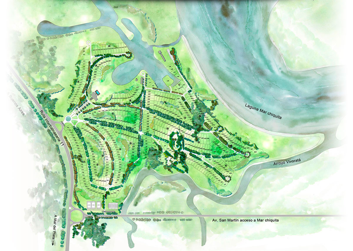 El emprendimiento está proyectado sobre una fracción de 83 ha. enclavada en el ángulo en donde se unen la R N. 11 y el camino de acceso a las playas de Mar Chiquita (Av. San Martin) sobre el lado del mar. Proyecto que privilegia el respeto por el equilibrio ecológico, sus vistas y bellezas naturales autóctonas, flora y fauna
